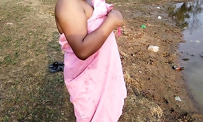 Tamil aunty washes clothes in bathroom when a man comes & gives her rough lovemaking - And give something behind (Huge cumshot)