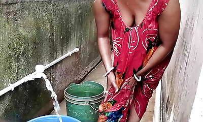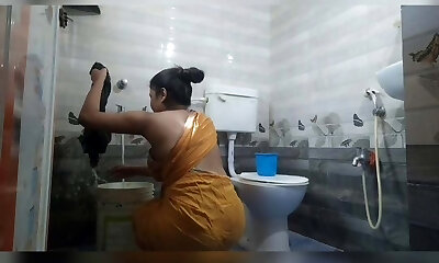 Tamil aunty washes clothes in bathroom when a man comes & gives her rough lovemaking - And give something behind (Huge cumshot)